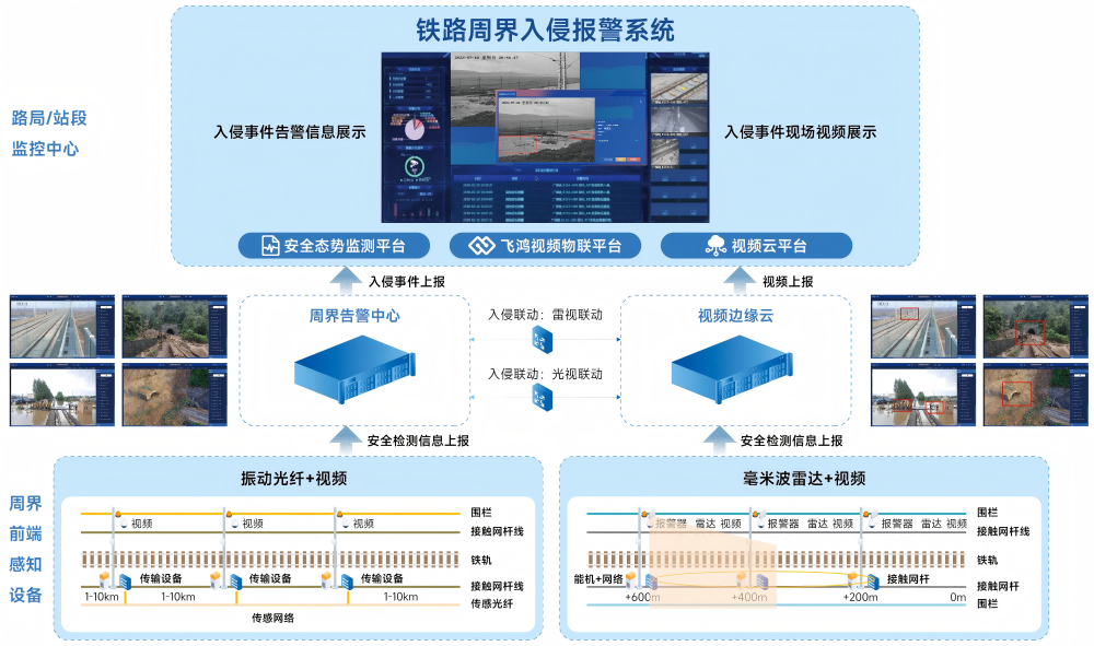 铁路周界入侵报警系统由绿色版888集团与华为公司联合打造,采用绿色版888集团视频云一体化平台与华为公司边端入侵检测算法结合,前端采用光纤传感、微波雷达技术,构建端边云协同、全网智能化的方案,实现全天候、长覆善的实时目标识别、告警,以多维度融合模式识别算法和深度神经抗干扰算法,保证了“0”漏报和低误报率,具有高可用性,节省无效复核时间,可应用于铁路沿线人员及大型动物入侵监测、自然灾害易发区域监测、桥梁隧道基础设施监测等场景。